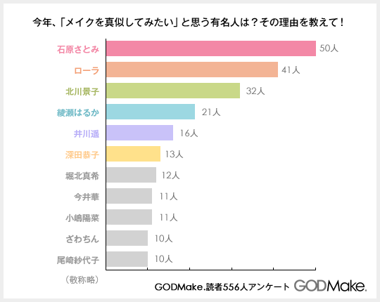 Q3. 今年、「メイクを真似してみたい」と思う有名人は?その理由を教えて!(敬称略)