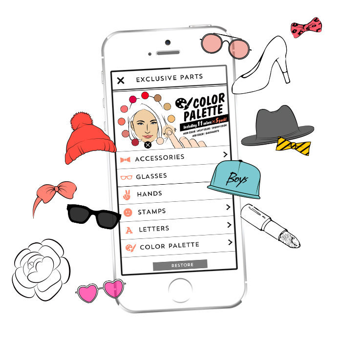 最先端のトレンドファッションや、数々の感情を表現出来るスタンプなど随時追加されていきます。