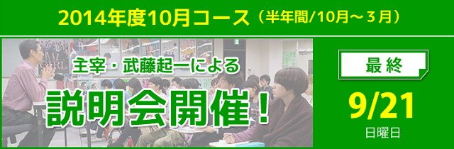 NCWのことを詳しく知りたい方は勿論、映画業界(配給・宣伝等)に就職・転職したい方、映画監督になりたい方、映画をつくってみたい方に向けた、2014年度10月コース(半年間/10月~3月)の最終説明会を行います。