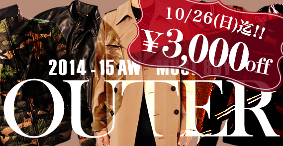 本日から10月26日(日)迄の3日間限定でクーポンキャンペーンを実施します。対象商品は8,700品以上。憧れの海外ブランドのアウターをお得にお買い求めいただけるチャンスです。