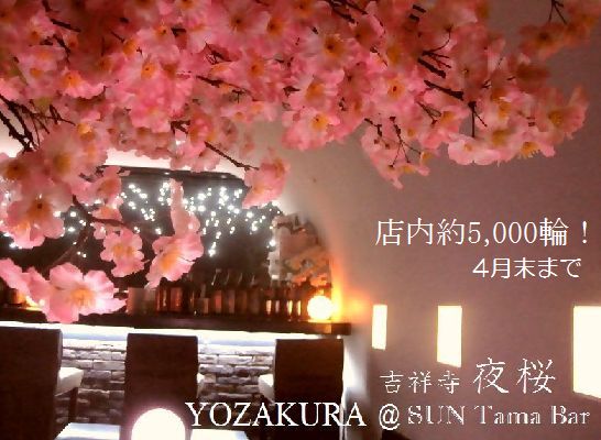 また、桜とイルミネーションのコラボ『吉祥寺 夜桜 @SUN Tama Bar』を4月末まで延長決定!