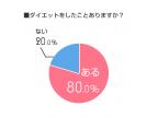 8割がダイエットをしたことがあると回答しました。食事系、運動系どちらも試したことがある人が多いようです。