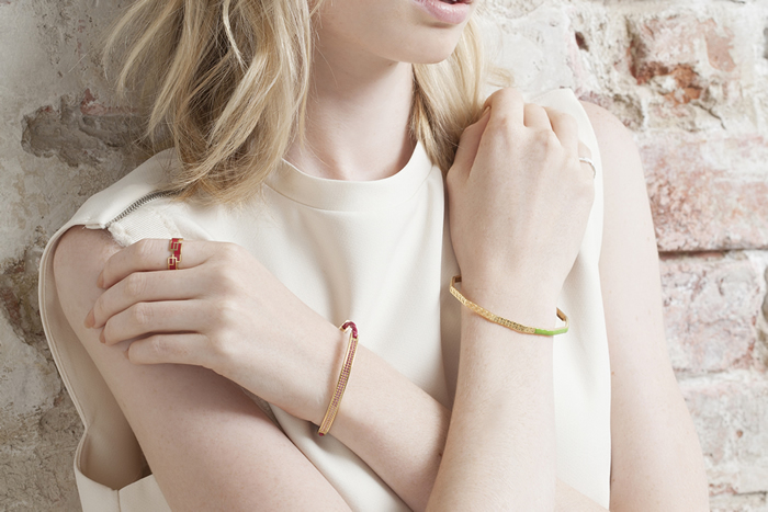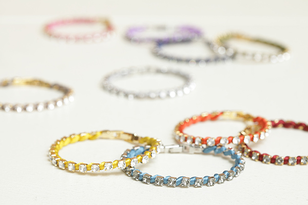 カラフルで豊富なカラー展開も特徴で、重ね着けや、シリーズを超えたコーディネートもお勧めできます。ブランドの代表作『Dazzling color tennis』は鮮やかなサテンコードにスワロフスキーを合わせたブレスレット。3サイズ展開で全10色展開。幅広い客層に対応でき、シーン問わずに合わせていただけるラインナップになっています。