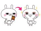 まぶたに塗って乾かすだけでふたえになるリキッドにパールアイシャドウを入れたことで、アイメイクに馴染んで自然なふたえに仕上がる「AB ふたえカラープチフィルム」。この二重アイテムを使い、「ひとえうさぎ」はどんな目元に変身するのか・・・。