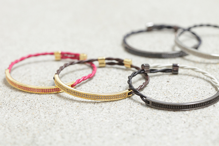 スワロフスキーは単色やグラデーション、革ひももそれぞれに合うカラーを組み合わせ、カラーバリエーション豊か。