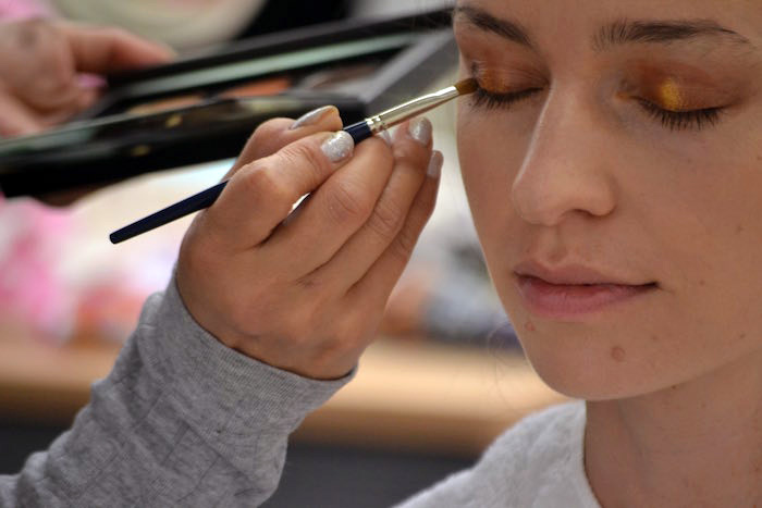 その後はバックステージトレンドを解説しながらメイクアップのデモンストレーション、そして後半の実践レッスンでは参加者達が2人1組になりメイクレッスン。宮本氏は各参加者に個別指導を行いました。