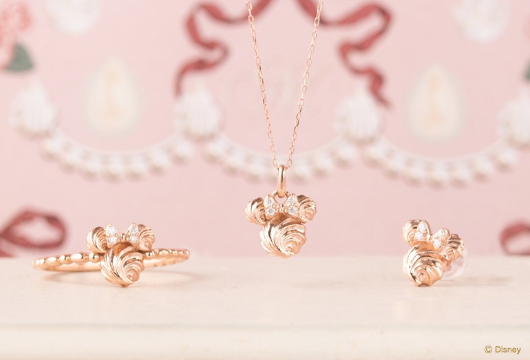 また、デイリーに身に纏いたい華奢なジュエリーも登場。可愛いらしい“ミニーマウス”を小さなホイップクリームで表現した<Whipped Cream>コレクションは、ピンクゴールドとダイヤモンドのリボンが可憐な印象。ロマンティックなジュエリーは、クリスマスギフトにもおすすめ。