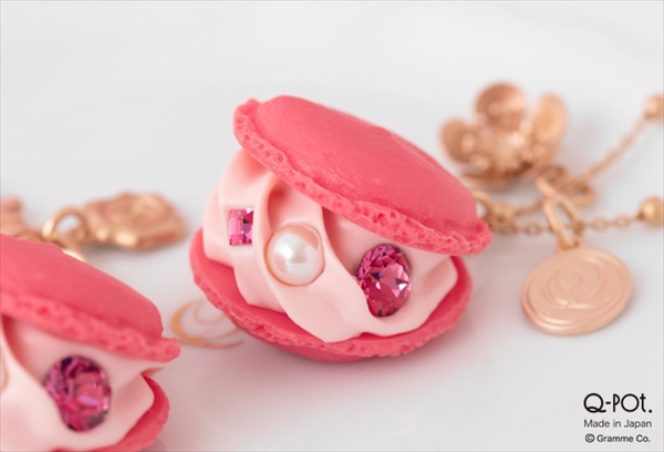 和と洋がミックスされた梅マカロンは、Q-pot.ファンの間で知られる幻のレアアイテム。過去に登場した限定マカロンが新たに生まれ変わり、期間限定イベントショップにて数量限定で復刻する。梅色のマカロンコックで 淡いピンク色のクリームをたっぷりとサンドし、高級感のあるパールと美しい輝きのクリスタルガラスをあしらった梅マカロンは、仕上げに添えた華やかな梅の花のチャームがポイント。梅の花を細部まで繊細に表現した、美しいディテールが魅力的。