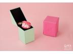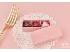 限定マカロンは“Q”の刻印が入った、スペシャルBOXに入れてお渡し。小春日和のように淡く柔らかなミントブルーと梅の花のように華やかで可憐なピンクの2色から選ぶことができる。