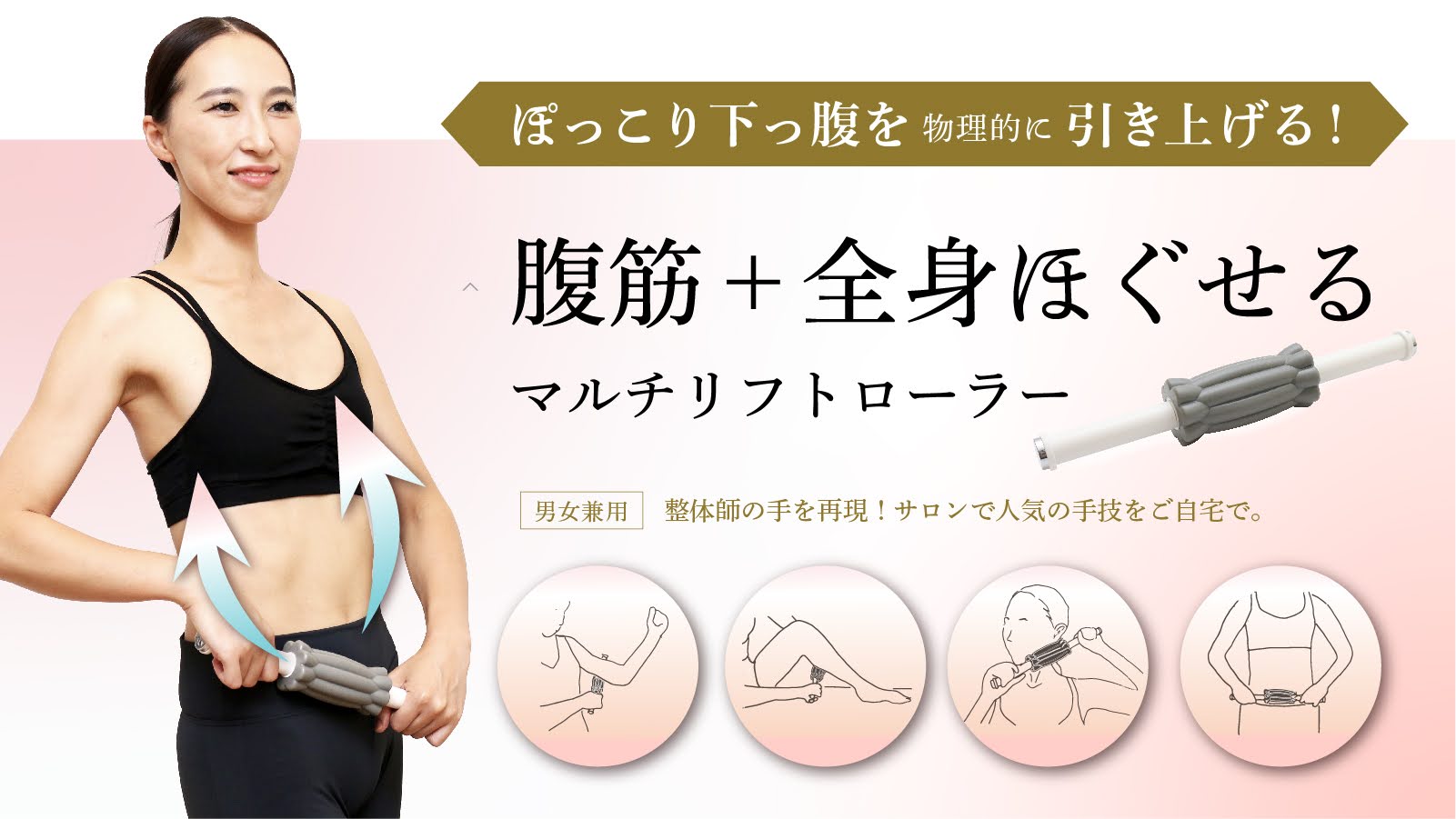 ・お腹以外にも、ふくらはぎ、大腿、お尻(仙骨)まわり、首、肩、顔、二の腕などコロコロすることでコリをほぐ
