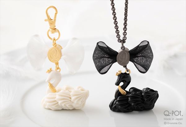 スイーツを中心に大人の甘さ広がる愛らしいデザインと特別な質感が魅力的な<Q-pot. Parlor>からは、時の経過とともに刻々と表情を変えていく幻想的な湖と、淡い湖の光の色に染まった美しい白鳥を表現した、王家に伝わる伝統の「Swan Lake Cake」が登場。シンボリックな白鳥を淡いパステルのバタークリームで表現したネックレスやバッグチャームは、朝もやに包まれる幻想的な湖をブルースワン、淡いピンク色に染まった夕暮れ時の湖をピンクスワン・・・と光の色に染まった白鳥を4色のバタークリームケーキで表現。バレリーナのチュチュをイメージした軽やかなリボンや気品溢れる王冠、羽のモチーフを飾った。合わせて、スワンの羽のようにエレガントにデコレーションされたバタークリームのピアス&イヤリングもラインアップ。