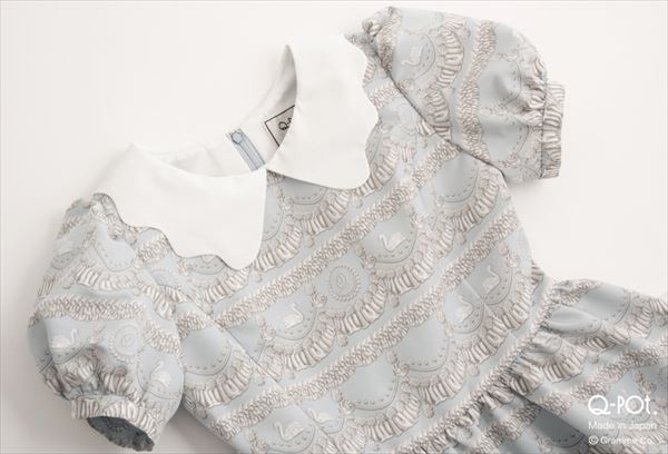 Q-pot.のアパレルライン<Q-pot. Dress>からは、朝もやに浮かぶ幻想的なブルースワンと夕暮れに染まるロマンティックなピンクスワンをイメージした、淡いパステルカラーのワンピースやスカート、ドレスシャツがラインアップ。幾重にも重なるエレガントなクリームとシンボリックなスワンがデコレーションされた、シュガークラフトケーキのような上品な佇まいの「Swan Lake Cake」テキスタイルは、クラシカルで幻想的な雰囲気。