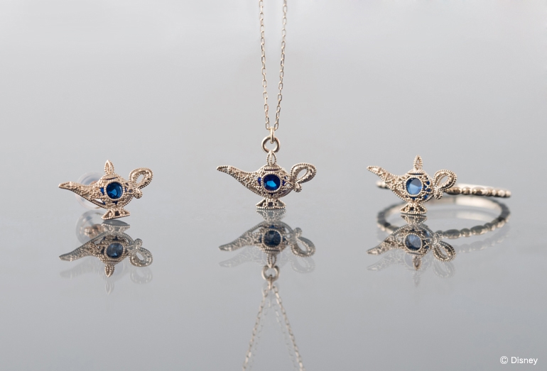 また、魔法のランプは華奢なK10ジュエリーもラインアップ。魔法のランプ、私の願いを叶えて・・・。きっと誰もが、一度はその魅力の虜になった魔法のランプが、煌びやかなジュエリーとなって登場。小さな魔法のランプに散りばめられた装飾は、繊細でありながらもゴージャスで、まるで魔法が吹き込まれたかのような美しさ。ランプの中に封じ込めたブルージルコニアは、エキゾチックな輝き。