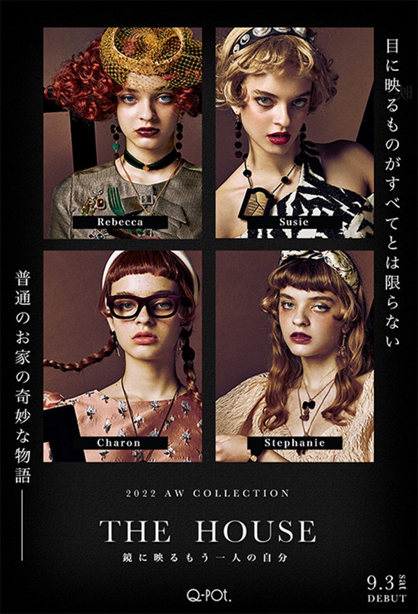 Made in Japanにこだわり、ユニークで遊び心溢れるポジティブアクセサリーを展開するQ-pot.の2022 AW新作コレクションがお披露目。まるでアメリカの連続ドラマのようなポスター風キービジュアルで幕を開けた『THE HOUSE ―鏡に映るもう一人の自分―』コレクションが2022年9月3日(土)よりQ-pot.直営店&Q-pot. ONLINE SHOPにて発売する。
